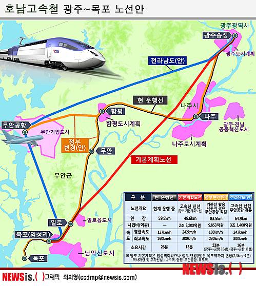 지난달 총선에서는 민주통합당이 '무안공항 경유 고속신선'을 호남권 총선공약으로 제시하기도 했다.