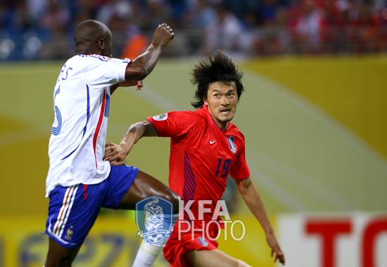 독일 월드컵 프랑스전에서 고군분투하는 조재진 ⓒKFA 홍석균