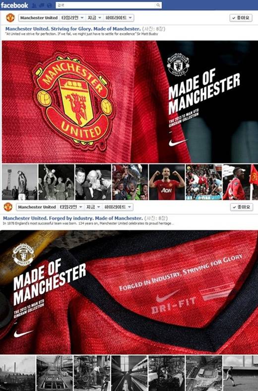 최근 잉글랜드 프리미어리그의 맨체스터 유나이티드(이하 맨유)는 구단이 운영하는 페이스북 팬페이지를 통해 새 유니폼 일부를 공개했다. 이는 오는 2012-2013 시즌부터 선수들이 착용하게 되는 것.