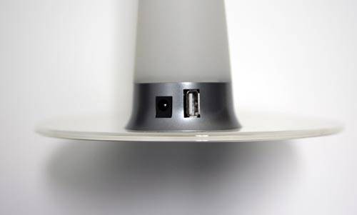전원은 일반 DC 어댑터를 이용한다. 어댑터 연결 부위 뒤쪽에는 전원 공급이 가능한 USB 포트를 달았다. 덕분에 USB 케이블을 이용한 제품이라면 스마트폰, 보조 배터리, MP3 등 모바일기기를 가리지 않고 충전할 수 있다. 그 뿐 아니라 PC용 미니 스피커를 USB에 꽂고 스마트폰 음악도 들을 수 있어 편리하다. 전등을 켜지 않은 상태에서도 충전할 수 있는 것도 장점 가운데 하나다. 다만 USB 포트 출력 전류는 500mAh여서 더 높은 출력을 요구하는 태블릿은 충전할 수 없다.