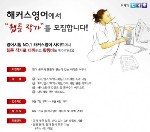 해커스영어의 웹툰작가 모집에 대한 더 많은 정보는 홈페이지 www.Hackers.co.kr 에서 확인할 수 있다.