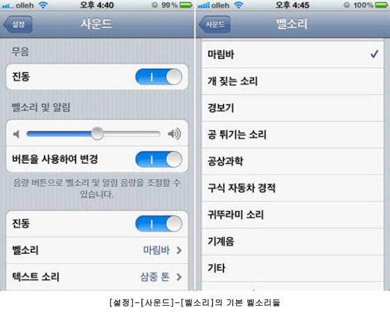 참고로 과거에는 벨소리만 바꿀 수 있었지만, 이제는 벨소리 이외에도 음성 메시지, 메일, 트윗, 캘린더 알림 등 각각의 알림 소리를 개별 설정해 사용할 수 있다. 다른 사람들과 똑 같은 소리가 싫증이 났다면 다른 것으로 바꿔 사용해 보는 것을 권한다.
