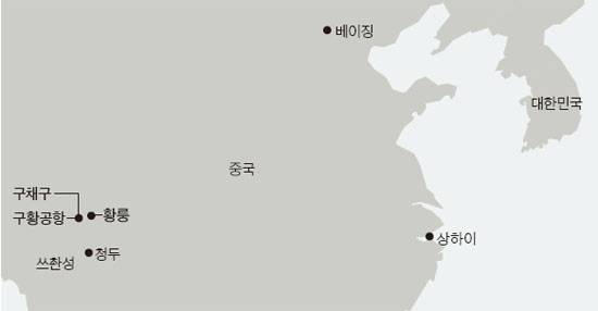 서울에서 서너 시간 거리인 청두(省都)가 구채구 여행의 기점이다. 삼국시대 촉나라의 수도였던 청두는 가볼 곳이 많은 고대 도시다. 제갈량을 기린 사당인 무후사(武侯祠), 당나라 시인 두보가 4년을 머물렀다는 두보초당, 유네스코 세계문화유산으로 지정된 낙산대불(樂山大佛) 등을 거느리고 있다.