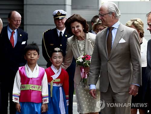epa03244316 Sweden's King Carl XVI Gustaf (R) and Queen Silvia (2-R) are seen with South Korean children at the Yeosu Expo site in Yeosu, South Korea, 01 June 2012. Sweden's King Carl XVI Gustaf and Queen Silvia arrived in Seoul for a four-day visit. EPA/JEON HEON-KYUN ☞ 세계신규대학 평가…포스텍 1위, 카이스트 5위☞ 日 1980년대 인기 드라마 오싱, 30년 만에 영화화☞ 부모와 동거하는 30~40대 자녀 10년새 91% 증가☞ 핸드볼 남녀대표팀 런던올림픽서 강호들과 한 조☞ 그리스 고립화 조짐..무역보험 중단(종합)