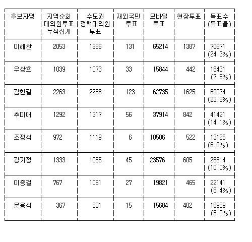 <표> 민주통합당 전대 후보별 세부 득표 현황