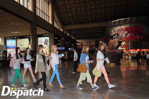 출국장 안. 가장 먼저 모습을 드러낸 멤버는 정아(28)와 유이(24)였습니다. 이들은 오랜 해외 스케줄 경험 덕분인지 공항이 익숙한 듯 보였습니다. 함께 유유히 공항을 걷고, 수다를 나누며 여유로운 모습을 보였죠.