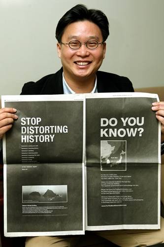 또 "2011년에는 소셜커머스 위메이크프라이스에서 모아주신 성금으로 월스트리트저널에 '독도는 우리땅'이라는 한글 광고를 냈다. 어떻게 보면 네티즌 분들이 힘을 모아주셔서 지탱하게 된 부분이 많다"고 감사의 마음을 전했다.