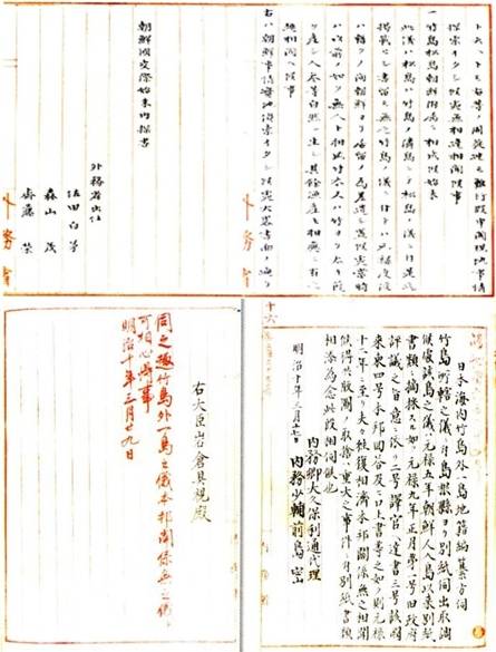 과거 일본 정부의 공문서조차도 독도가 대한민국의 영토라는 것을 인정했다. 1696년 도쿠가와 막부의 < 울릉도 도해금지(渡海禁止) > 문서, 19세기 말 메이지(明治) 정부의 < 조선국교제시말내탐서 > (1870년), < 태정관 지시문 > (1877년) 등이 그것이다. 특히 1877년 3월 일본 메이지 시대 최고 행정기관인 태정관은 17세기말 도쿠가와 막부의 울릉도 도해금지 사실을 근거로 '울릉도 외 1도, 즉 독도는 일본과 관계없다는 사실을 명심할 것'이라고 분명히 지시한 바 있다.