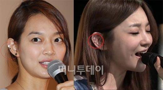 그 외 피어싱으로 멋스러움을 더한 스타로 그룹 애프터스쿨의 유이, 소녀시대의 태연 티파니 효연 등이 있다.