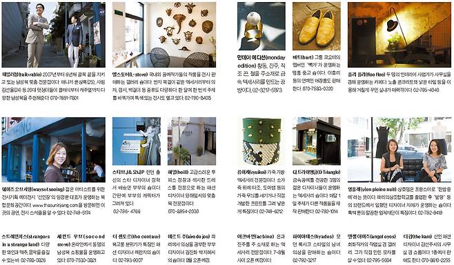 유럽에는 오래된 골목길이 많다. 그래서인지 이곳 T자 골목에 들어선 패션숍의 오너 디자이너들 중엔 유럽에서 공부한 유학파가 많다. '엉플래뉴(en pleine nuit)'의 허지인(30)·지예(26) 자매, '하이아데스(hyades)'의 김현서(33)·김은제(32)씨는 프랑스 파리에서 의상디자인을 공부했다. '류이케(ryuikei)'의 김희영씨는 영국 런던에서 디자인을 공부하고 돌아와 이곳에 자신의 첫 번째 숍을 냈다.