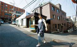 색깔 있는 패션숍, 오래된 주택가, 그리고 개성 있는 젊은이가 묘하게 어울린 풍경. 한남동 'T자 골목'의 특징이다.한 달 전 이곳에 의상실을 연 패션디자이너 양해일씨는 파리 '오트 쿠튀르(고급 맞춤복)' 브랜드에서 25년간 활동했다. 그런 그가 지난해 말, 파리 생활을 접고 한국으로 돌아왔다. "외국의 명품 브랜드들이 들어오면서 사라진 '양장점(맞춤복) 문화'를 살리고 싶어요. 가장 멋져 보이는 옷은 비싼 옷이 아니라 내 체형에 맞는 옷이거든요." 그는 올 초부터 압구정동·청담동·부암동·삼청동 등을 차례로 둘러봤다고 한다. 그리고 우연히 들른 데가 이곳 한남동이다. "한강진역부터 대로를 따라 걷다가 아랫길과 연결된 좁은 층계를 발견했죠." 양씨는 채 30걸음도 안 되는 짧은 계단이지만 그 아래로 연결되는 작은 골목길에서 아기자기한 파리의 풍경이 떠올랐다고 한다. "좁은 골목과 계단으로 연결된 몽마르트르 언덕에는 구석구석에 작은 의상실과 예쁜 카페들이 숨어 있죠."