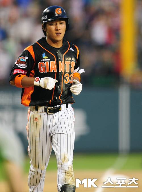 23일 오후 서울 잠실야구장에서 열린 '2012 팔도 프로야구' LG 트윈스와 롯데 자이언츠의 경기에서 9회초 무사 LG 류택현을 상대로 시즌 첫 홈런을 날린 정훈이 홈으로 들어오고 있다.