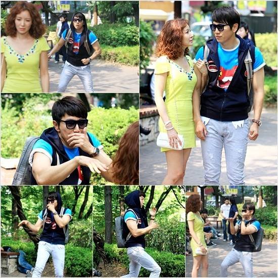 김수로와 윤세아의 데이트 장면은 지난 21일 서울 홍대 앞 한 놀이터에서 촬영이 진행됐다. 김수로는 30도를 웃도는 무더운 날씨 속에서 몸에 딱 달라붙는 스키니진과 겹겹이 레이어드한 후드 티셔츠를 입고 땀 꽤나 흘리는 촬영을 진행했다는 후문. 하지만 다들 더위로 힘들고 지쳐갈 때마다 김수로가 '파이팅'을 외치며 촬영장 분위기를 한껏 돋웠다는 전언이다.