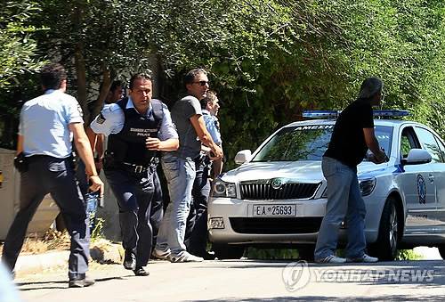 epa03285826 Greek police officers search for two armed suspects who earlier robbed and briefly abducted a man in the upscale northern Athens suburb of Kifissia, Greece on 28 June 2012. The victim, who was subsequently released unharmed, was identified as the father-in-law of Greek football coach Giorgos Donis. One police officer was injured in the leg in an exchange of fire, as was one of the two suspects. One of the monument's guards reported the incident to the police and Fire Brigade. A Fire Brigade rescue crew retrieved the man, who was rushed by ambulance to nearby Red Cross hospital with head and body injuries, where he succumbed to his injuries a few hours later. Police are conducting a preliminary investigation into the circumstances of the incident. EPA/ALEXANDROS VLACHOS ☞ 대법 '만삭아내 살해혐의' 의사 사건 파기환송 ☞ 방통위, '웹하드 등록업체' 실태점검 ☞ < 청주ㆍ청원 통합 확정 불구 갈등 여전 > ☞ < 윔블던테니스 > 찰스 왕세자 40년만에 경기장 방문 ☞ 감사원"가스공사,LNG공급가 200억 과다징수"(종합)