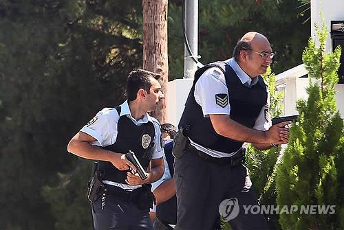 epa03285827 Two Greek police officers search for two armed suspects who earlier robbed and briefly abducted a man in the upscale northern Athens suburb of Kifissia, Greece on 28 June 2012. The victim, who was subsequently released unharmed, was identified as the father-in-law of Greek football coach Giorgos Donis. One police officer was injured in the leg in an exchange of fire, as was one of the two suspects. One of the monument's guards reported the incident to the police and Fire Brigade. A Fire Brigade rescue crew retrieved the man, who was rushed by ambulance to nearby Red Cross hospital with head and body injuries, where he succumbed to his injuries a few hours later. Police are conducting a preliminary investigation into the circumstances of the incident. EPA/ALEXANDROS VLACHOS ☞ 대법 '만삭아내 살해혐의' 의사 사건 파기환송 ☞ 방통위, '웹하드 등록업체' 실태점검 ☞ < 청주ㆍ청원 통합 확정 불구 갈등 여전 > ☞ < 윔블던테니스 > 찰스 왕세자 40년만에 경기장 방문 ☞ 감사원"가스공사,LNG공급가 200억 과다징수"(종합)