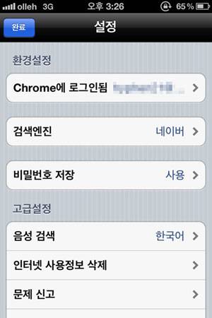 이에 구글 크롬 앱을 아이폰4에 직접 내려받아 설치하고 사용해 보았다. 확실히 구글 크롬 앱을 이용하니 인터넷에서 검색한 내용이 표시되는 속도가 빨랐다. 개인적인 생각일 수도 있지만, 아이폰 기본 브라우저인 사파리 앱보다 구글 크롬 앱이 좀 더 빠른 것을 느낄 수 있었다.