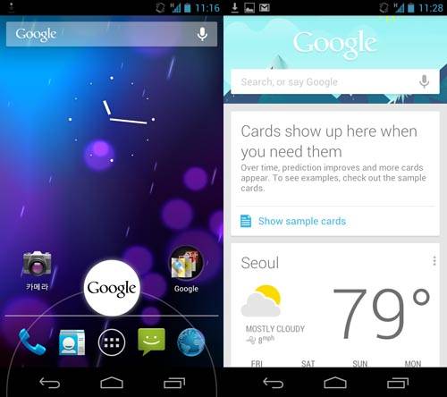 ▲ 젤리빈에 탑재된 새로운 기능 '구글나우'