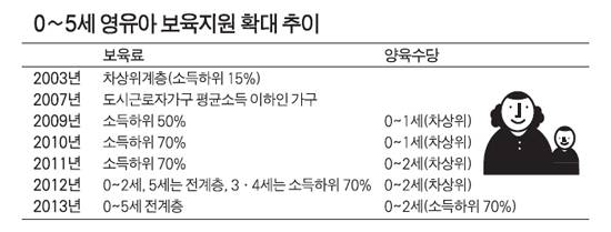 하지만 재정부는 3~5세 무상 보육은 예정대로 전계층으로 확대한다는 방침이어서 0~2세만 재검토하는 것은 여전히 전문가들의 견해가 반영되지 않은 셈이다. 박 원장은 "재정부도 국회 통과 당시 찬성했던 만큼 정책 번복에 대한 책임은 져야 한다"고 말했다.