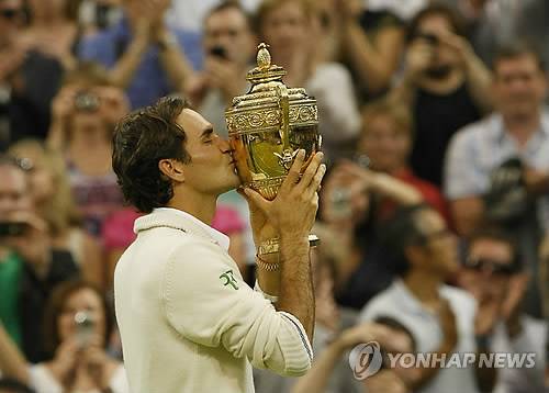 epa03300964 Roger Federer of Switzerland kisses his trophy following the men's final match for the Wimbledon Championships at the All England Lawn Tennis Club, in London, Britain, 08 July 2012. EPA/JONATHAN BRADY ☞ 내년 하반기 울산서 고래잡이 재개 가능성 ☞ < 한류스타 장근석, 아시아를 감전시키다 > ☞ < 금강산관광 중단 4년..벼랑끝 영세업체들 > ☞ -US여자오픈골프- 최나연, 메이저 우승 눈앞(종합) ☞ < 갤럭시S3 '3G vs LTE', 당신의 선택은 >
