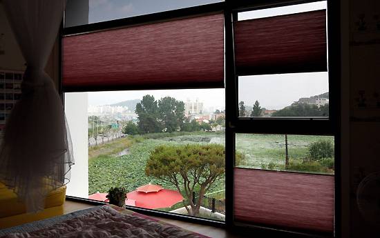 주변 풍경을 안으로 끌어들이는 기조는 주택 전체에 퍼져 있다. 모든 창은 벽을 뚫어내는 방식이 아니라 벽 자체를 없앤 트임 방식으로 냈다. '5경'을 100% 살리기 위해서다. 건축가 윤씨는 "부지 바로 옆에 연꽃 호수가 있는데 세로 부지 건축의 제약을 이겨내고 환경, 근경, 원경, 다경, 취경을 전부 활용한 설계이다"라고 말했다. 1월부터 이 집에 살고 있는 건축주 김씨도 만족해한다. "지을 때는 몰랐는디 짓고 보니 우리 집에는 소나무 한그루밖에 안 심었는디, 침실에서 보면 수백 그루 소나무가 집안으로 들어와요. 연꽃 호수도 징허니 이뻐요."