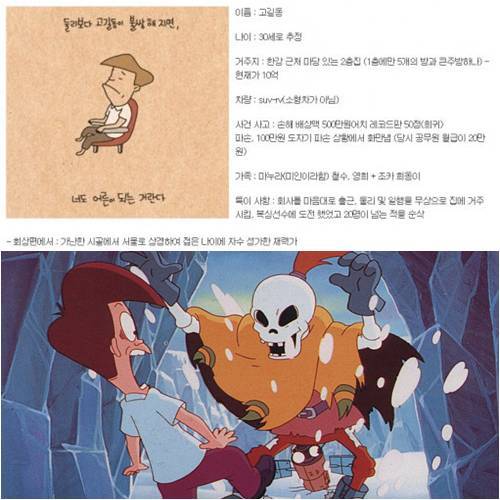 최근 한 온라인 커뮤니티 게시판에는 '짱구 아빠 못지않은 고길동 스펙'이라는 제목과 함께 고길동의 스펙이 게재돼 눈길을 끌었다. 고길동은 90년대 전설적인 애니메이션 '아기공룡 둘리'에 출연한 캐릭터다.