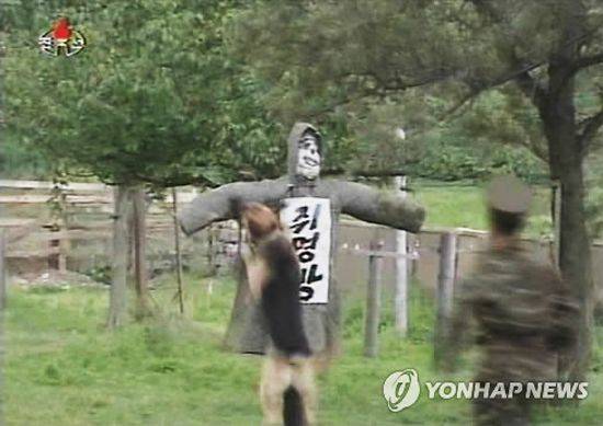 북한이 '김일성 동상 파괴 미수사건'과 관련해 이명박 대통령의 실명이 적힌 표적지에 사격하는 장면을 공개한 것으로 전해졌다.