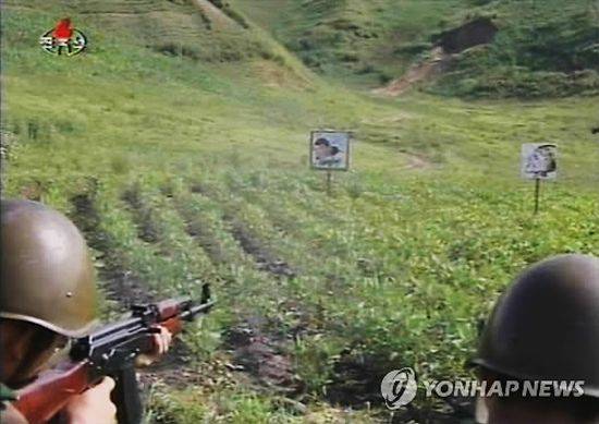北군인, '이명박' 쓰인 표적에 권총 겨누더니..