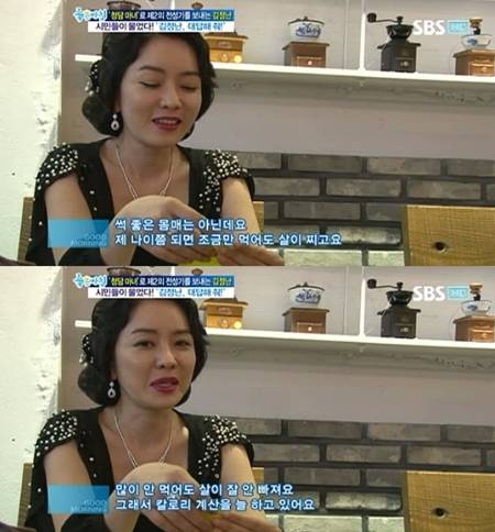김정난은 "내 나이쯤 되면 조금만 먹어도 살이 찐다"며 "그리고 많이 안 먹어도 살이 잘 안 빠진다. 그래서 칼로리 계산을 늘 하고 있다"고 고백했다.