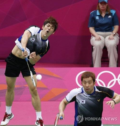 <올림픽> 스매싱 공격 이용대-정재성