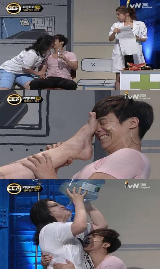 또 '이개인'팀은 '리얼티비' 코너 중 게걸스럽게 수박을 먹고 발냄새를 맡고 생수통을 온몸에 쏟아붓는 등 우스꽝스러운 장면을 연출하기도 했다.