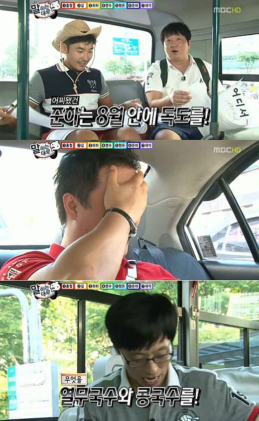결국 노홍철은 자신도 독도에 다녀온 적 있다며 독도를 강력 추천하더니 '언제'에 '8월 안에'를 적었다. 이어 유재석도 정준하의 버스에 올랐고, '무엇을'을 곰곰히 생각하던 유재석은 '콩국수와 열무 국수를'을 적었다. 이로써 정준하는 8월 안에 독도로 향하게 됐다.