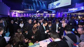 ↑ 5월 5일 영국 런던의 삼성 갤럭시S3 공개 현장. 체험용 제품 200개에 기자 2000명이 몰렸다. |
