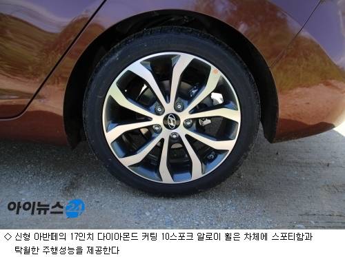 급가속 시에는 부밍음이 다소 상승하면서 스포츠카의 느낌도 살렸다. 이번 시승한 신형 아반떼의 연비는 16.5km/리터(ℓ)로 1등급이며, 이산화탄소 배출량은 142g/km으로 친환경도 실현했다.