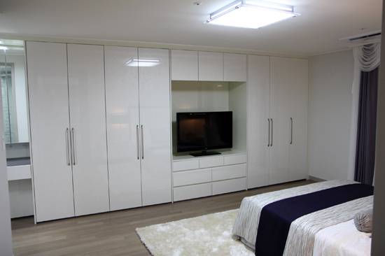 전용 99㎡는 전용 84㎡의 확장 평면으로 볼 수 있다. 하지만 붙박이장이 매입형과 돌출형으로 나눠져 수납공간이 상대적으로 더 확보됐다는 느낌이다. 안방의 길이방향 벽면에 전체에 붙박이장을 배치해 깔끔해 보이면서도 안방이 넓어 보인다.