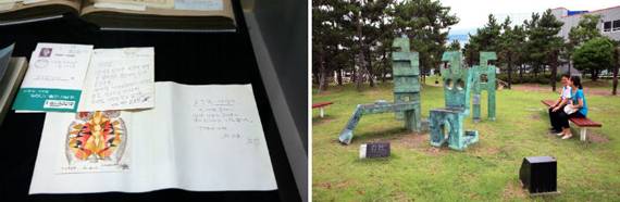 창원시립마산음악관에도 문신의 흔적이 있다. 작곡가 조두남에게 보낸 편지다. 음악관 앞 마산조각공원은 천천히 산책하며 쉬어가기 좋은 장소다.