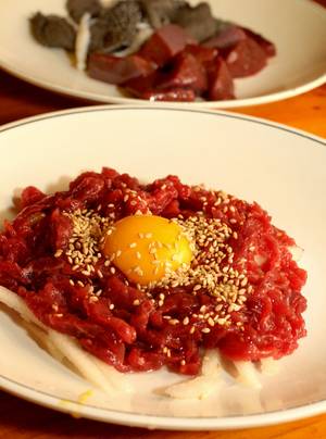 '서울식당'을 끼고 왼쪽 골목으로 들어서자 좁은 골목에 육회집이 모여 있다. 40여년 된 '육회자매집'이 인기를 끌자 네 집이 따라 생겼다. '육회자매집'은 이것저것 시키기 부담스러운, 혼자 온 손님들에게 육회와 천엽, 간을 섞어 1인분 가격에 준다. 해가 지지도 않은 자매집에는 빨간 육회를 안주 삼아 한잔 술 걸치는 손님들이 많다.
