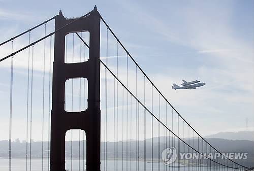 epa03405900 Space shuttle Endeavour, mounted atop NASA's modified 747 Shuttle Carrier Aircraft (SCA) makes a flyover the Golden Gate Bridge in San Francisco, California, USA 21 September 2012. The flyover marks the end of the Space Shuttle era. EPA/JOHN G. MABANGLO ☞ 박근혜 "과거사 죽 한번 정리하겠다"(종합) ☞ < '강남스타일' 싸이 대구서 말춤 공연 > (종합) ☞ "安 호객꾼 역할" vs "새누리 다급해"(종합) ☞ 프로야구 KIA, 음주 운전 손영민 임의탈퇴 요청 ☞ 이정희 또 묵비권…5시간만에 귀가(종합)