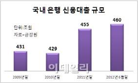 신용대출은 전체 가계부채의 절반을 차지한다. 금융감독원 금융통계정보시스템을 보면, 6월만 신용대출 규모는 약 460조원. 약 512억원인 부동산 담보대출액과 엇비슷한 수준이다. 신용대출은 담보 없이 신용만으로 대출해준 것으로 리스크가 보다 크다.