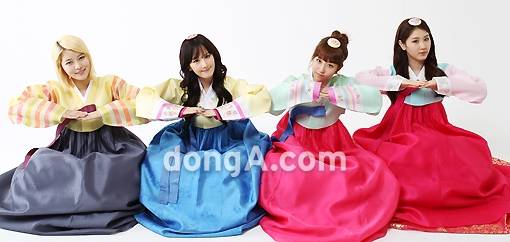 신인 걸그룹 엔이피(수진, 지수, 은채, 아미 왼쪽부터)가 "풍성한 한가위 되세요"라며 데뷔 후 첫 추석을 맞이해 팬들에게 감사의 인사를 전하며 포즈를 취했다.