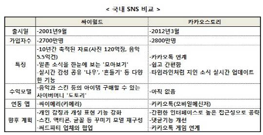 카카오스토리 vs 싸이월드 'SNS 전쟁'