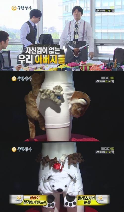 이어 정준하는 직접 속옷을 착용했다. 정준하는 "자신감 없는 아버지들"이라고 반복했고 적극적으로 속옷 기능을 설명했다. 정준하는 "자신감이 확 떨어지는 아버지들을 위한 어흥 팬티다"고 말했다.