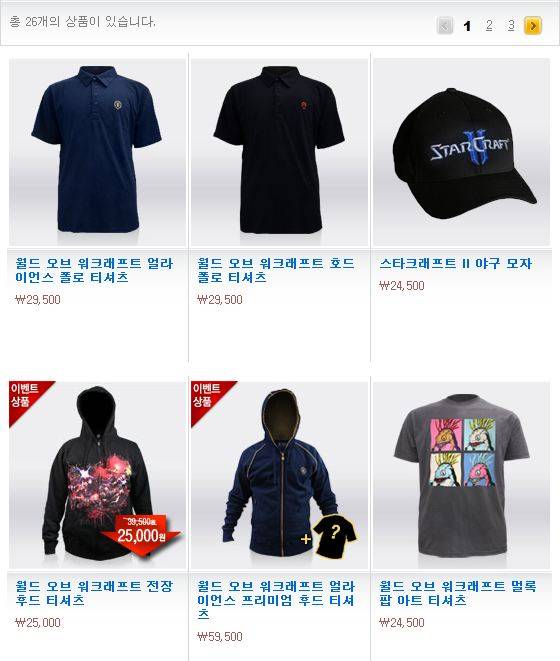 블리자드는 '월드오브워크래프트'를 비롯해 '스타크래프트2' '디아블로3'의 관련 상품들을 꾸준히 자사의 온라인 쇼핑몰인 블리자드 스토어( http://kr.blizzard.com/store/)를 통해 출시해왔는데, 이 중에서도 의상 제품은 입고되고 얼마 지나지 않아 매진되는 일을 종종 볼 수 있을 만큼 높은 인기를 누리고 있다.