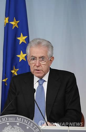epa03434954 Italian Prime Minister, Mario Monti, speaks during a press conference after the Italian Cabinet meeting in Rome, Italy, 16 October 2012. EPA/ALESSANDRO DI MEO ☞ 금융사만 좋은 일 시킨 연금저축…수익률 `낙제'(종합2보) ☞ 윤진이, 화장품 미샤 모델 발탁 ☞ 朴-文 정면충돌 가속화..文-安 단일화 신경전 고조 ☞ < 전국체전 > 김재범 "모든 걸 이뤄도 끝까지 할래요" ☞ 유치장 배식구 탈주 사실이다…캡쳐사진 공개