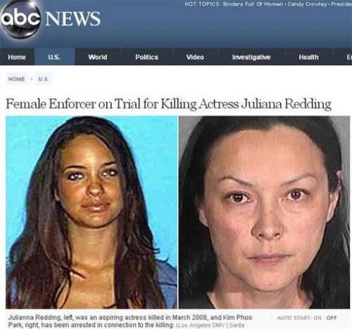 숨진 여배우 줄리아나 레딩(좌), 박칼린 언니 박켈리(우) |