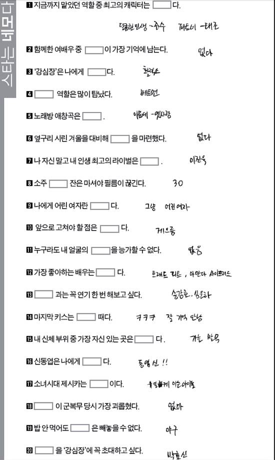 "이제까지 저의 필모그래피를 보면 알겠지만 연하랑 호흡을 맞춘 적이 거의 없어요. 언젠가 회식자리에서 '이제 정말 누나들이랑 연기하는거 지겨워. 나도 어린애들과 하고 싶어'라고 농담한 걸 방송에서 냉큼 얘기한거죠. 그래도 명색이 MC인데 "그 말이 아니잖아!"라고 정색할 수는 없잖아요. 문제는 그게 캐릭터로 굳어지더라구요. 어유, 요즘 세상이 어떤 세상인데 어린 여자만 좋다고 하겠어요. 억울해요."
