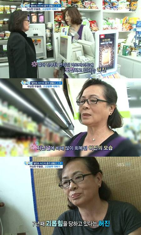 하지만 이날 허진은 몇 개월 전 생활비를 위해 나섰지만 포기할 수밖에 없었던 식당일 대신 최근 편의점 아르바이트에 도전해 눈길을 끌었다.