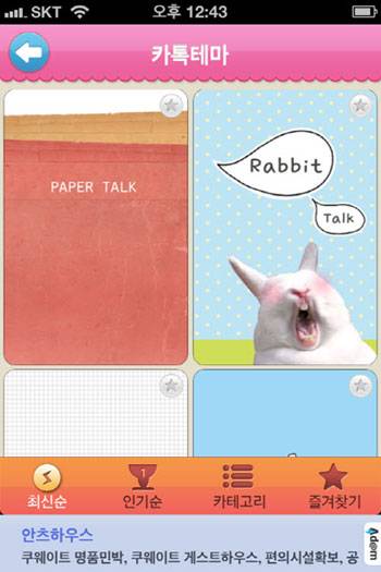 앱스토어 버전에서는 카카오톡 테마꾸미기, 배경화면 꾸미기, 카톡이모티콘 보내기 등의 서비스를 무료로 이용할 수 있게 된다.