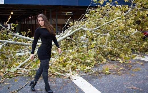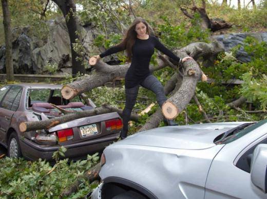 폭스뉴스, 뉴욕포스트 등 현지 언론의 2일자 보도에 따르면, 브라질 출신의 모델 나나 구베아(Nana Gouvea)는 샌디로 인해 나무가 꺾이고 차량이 파손된 한 도로 위에서 패션쇼에서나 볼법한 포즈로 찍은 사진을 공개했다.