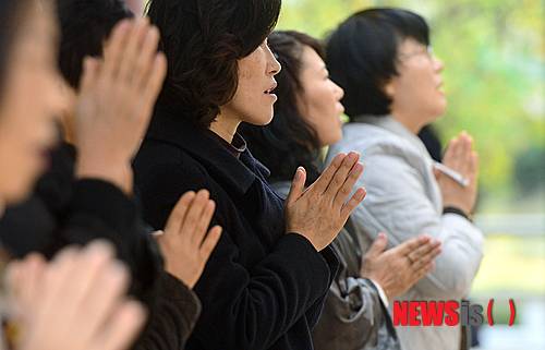【서울=뉴시스】최동준 기자 = 2013학년도 대학수학능력시험을 나흘 앞둔 4일 오전 서울 강남구 삼성동 봉은사를 찾은 학부모들이 자녀의 고득점을 기원하며 기도를 하고 있다.