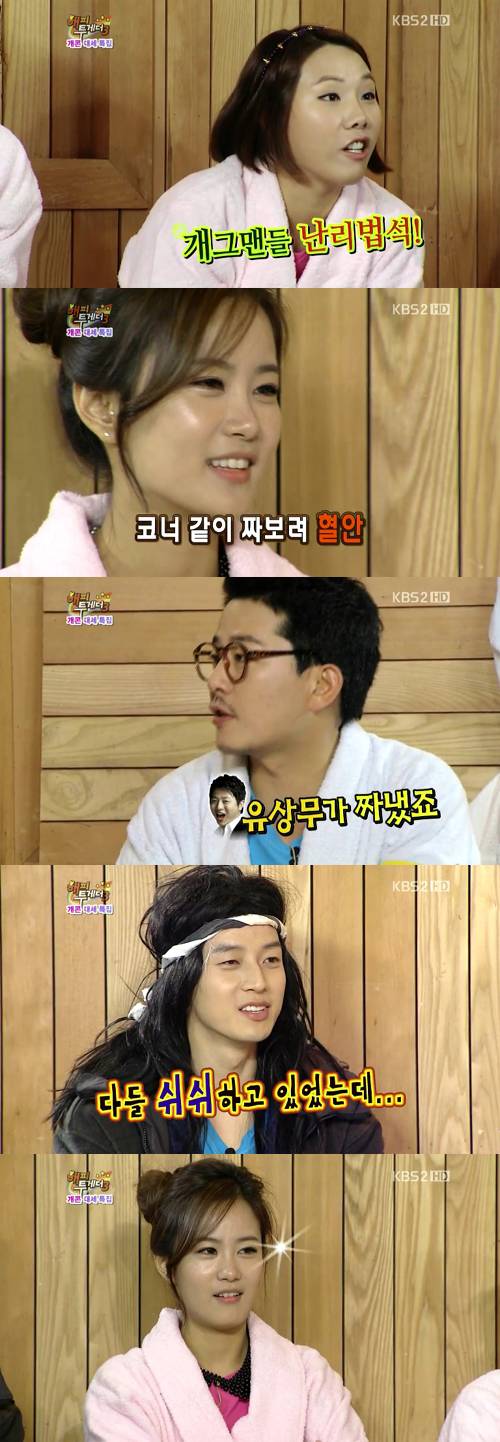8일 밤 방송된 KBS 2TV 예능프로그램 '해피투게더3'에는 '개그콘서트'의 김지민, 정경미, 박지선, 김영희가 출연해 재치 있는 입담을 과시했다.